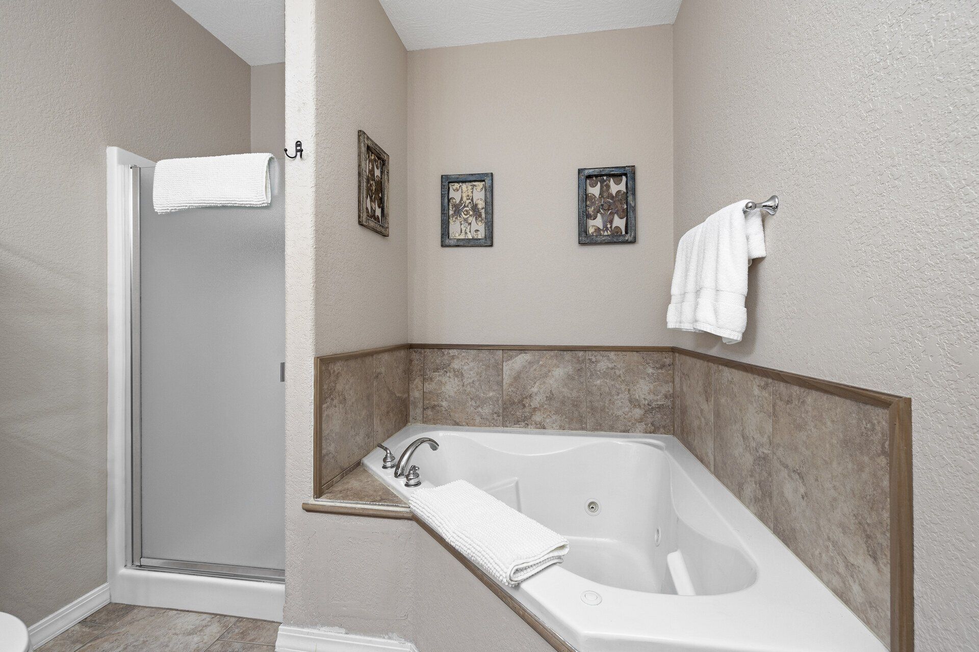 The perfect space for 2 couples or a family of 4 with 2 super comfy king-size beds, two full bathrooms, fully stocked kitchen and large living room area and your own private deck or patio. ***Please let us know if someone in your party has special needs, as some units may require stairs. The master bedroom features a king bed and a flat-screen TV with the master bathroom inside featuring a jetted tub and walk-in shower. The second bedroom also features a king bed and a flat-screen TV. The second bathroom features a full-size shower/tub combo. The living room has a huge flat-screen TV with a Roku, The dining room seats 4 comfortably at the dining table or at the kitchens bar top. The patio or deck is spacious, and most offer a beautiful view of the lake. It will also comfortably seat 4 for dining or relax while watching the sun set or rise. Guests will have access to the pool, the lake and everything in the condo including all toiletries and so much more!