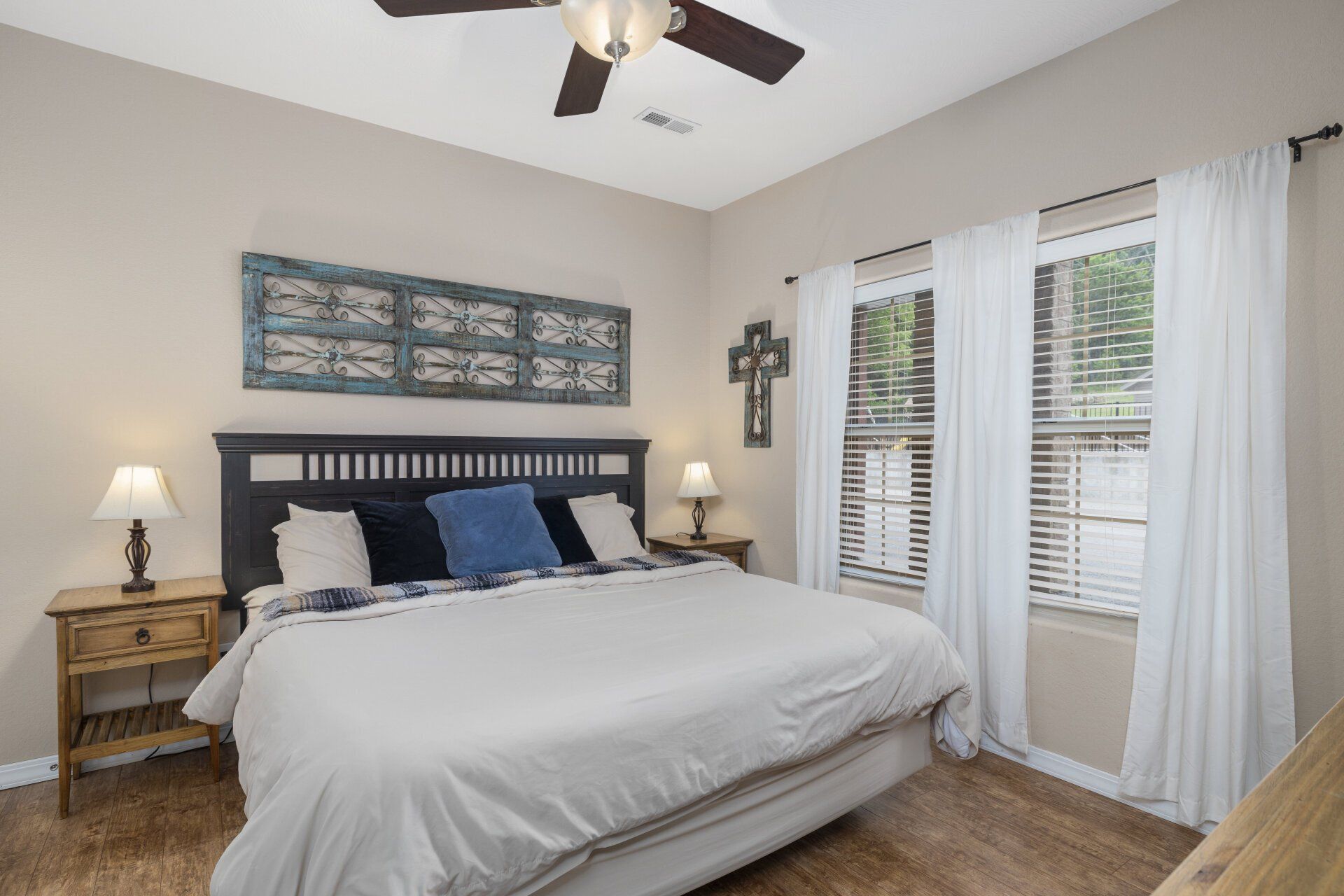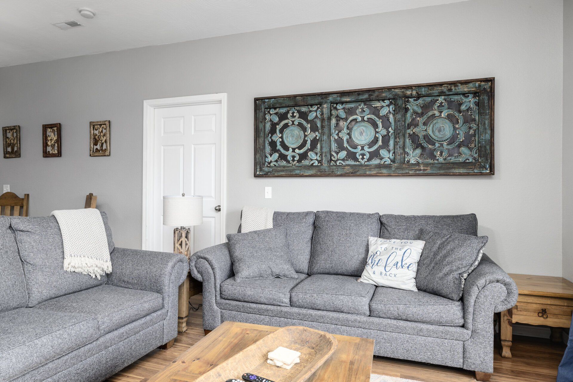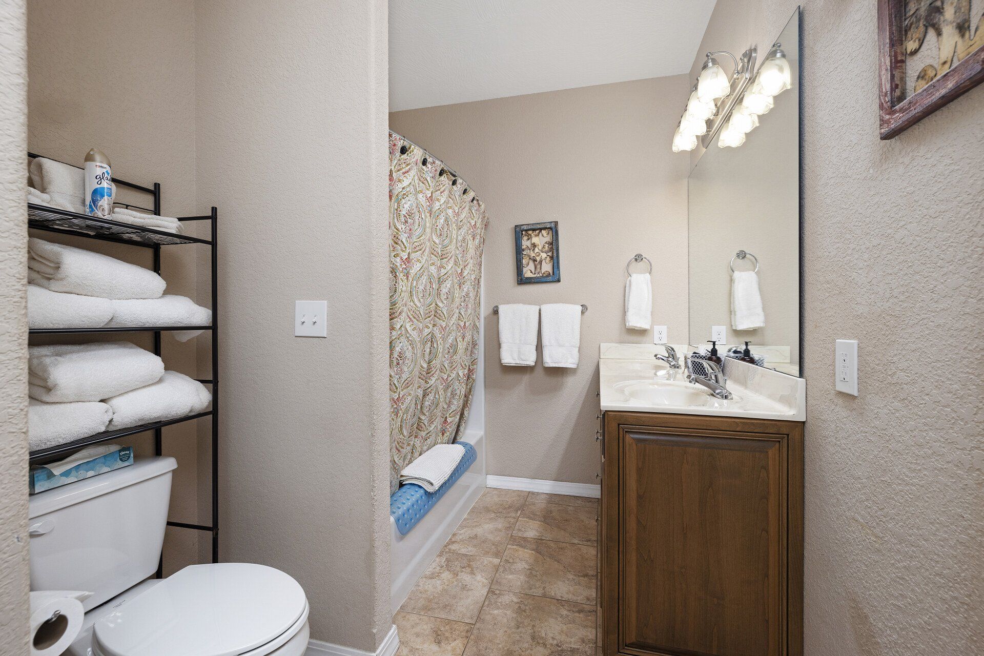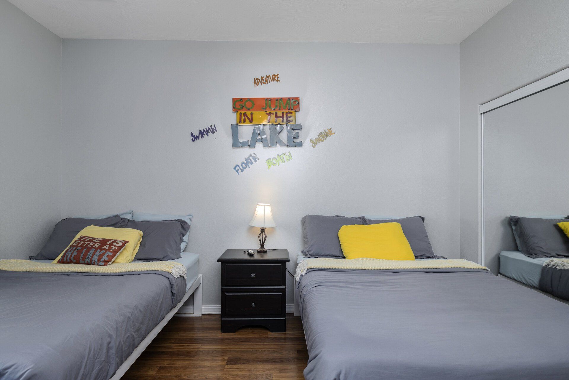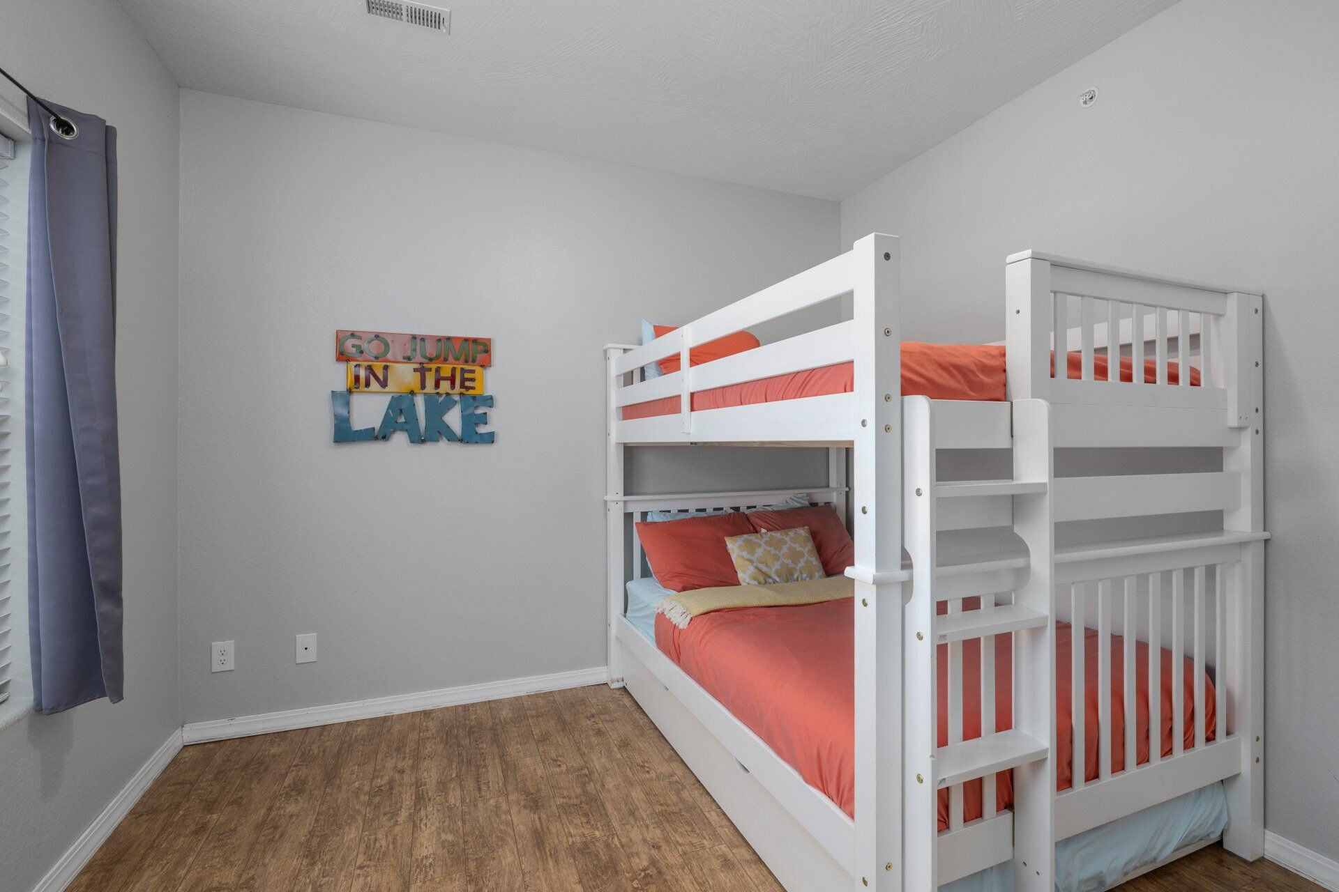 The perfect space for 1 family! This set up allows for a maximum of 6 people, with 1 super comfy king-size bed in the master and 3 full size beds in the 2nd bedroom. You will also enjoy the two full bathrooms, fully stocked kitchen and large living room area and your own private deck or patio. ***Please let us know if someone in your party has special needs, as some units may require stairs. The master bedroom features a king bed and a flat-screen TV with the master bathroom inside featuring a jetted tub and walk-in shower. The second bedroom features 3 full size beds and a flat-screen TV. The second bathroom features a full-size shower/tub combo. The living room has 2 sofas, 1 that pulls out into a bed, with a huge flat-screen TV with a Roku. The dining room seats 6 comfortably at the dining table plus 3-4 seats at the kitchen bar top. The patio or deck is spacious, and most condos offer a beautiful view of the lake. It will also comfortably seat 4-6 for dining or relax while watching the sun set or rise. Guests will have access to the pool, the lake and everything in the condo including all toiletries and so much more!