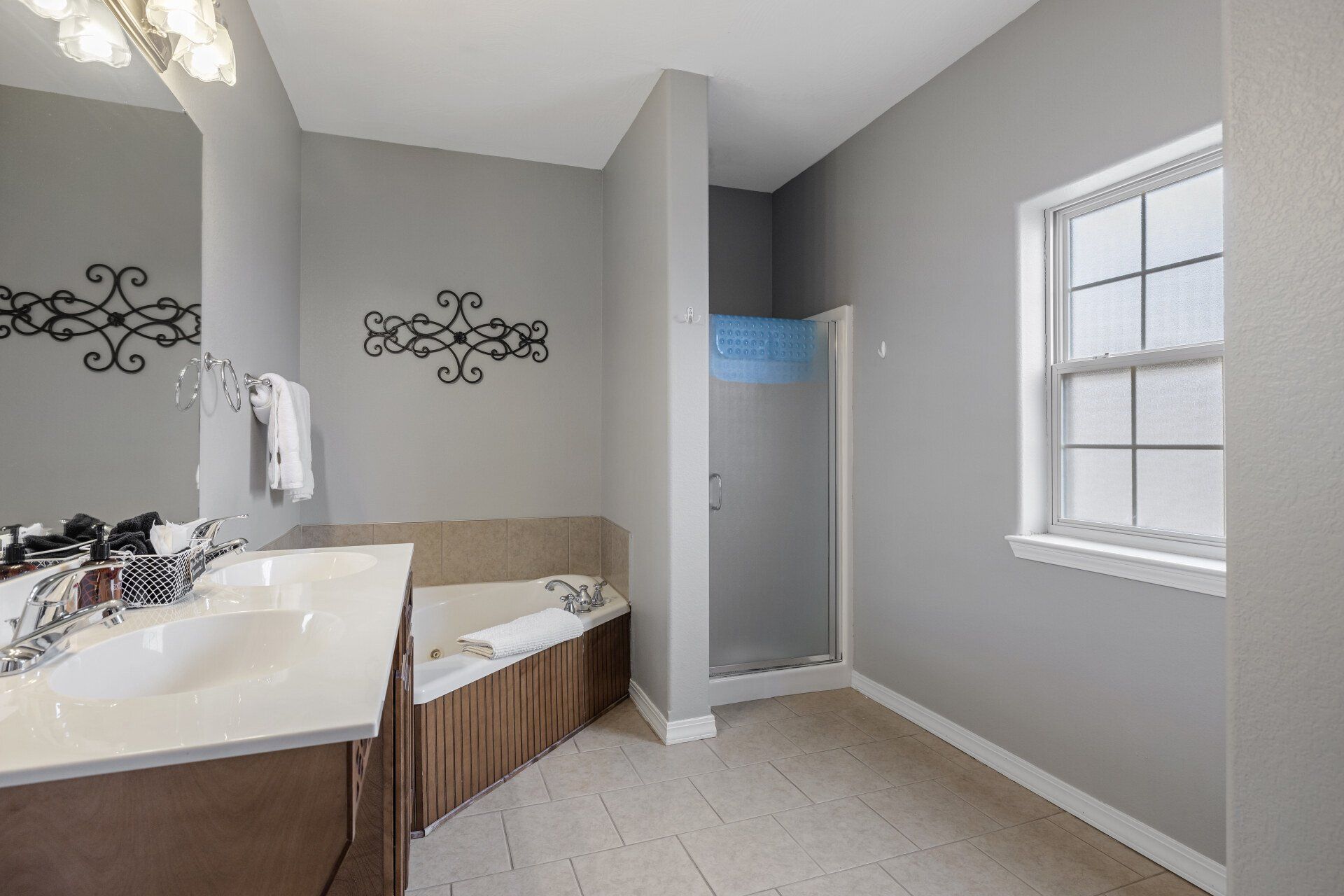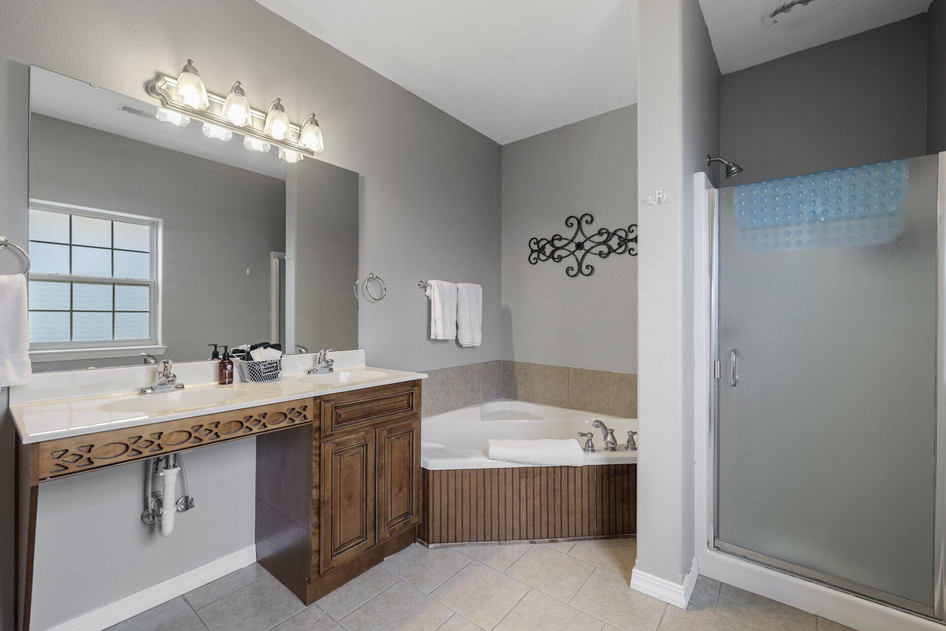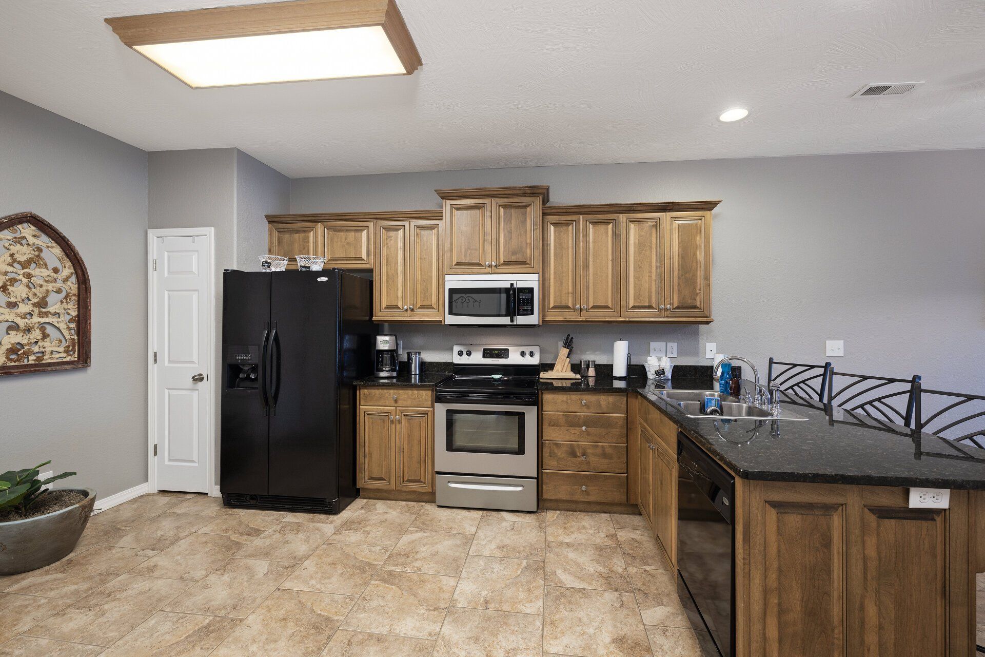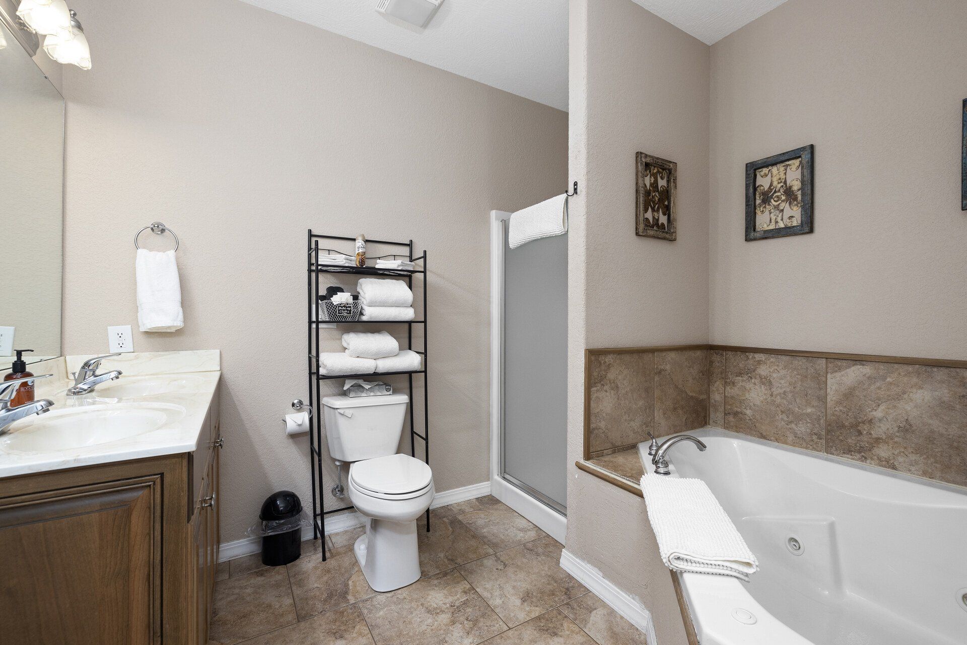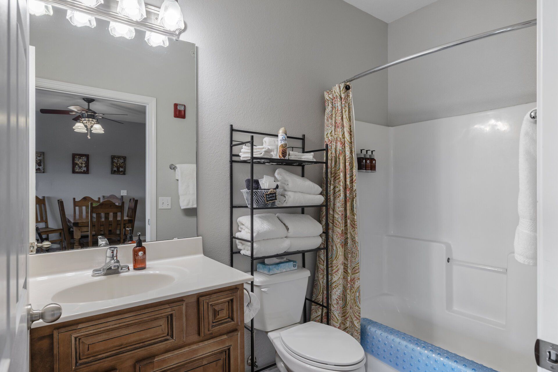 The perfect space for 1 family! This set up allows for a maximum of 6 people, with 1 super comfy king-size bed in the master and 3 full size beds in the 2nd bedroom. You will also enjoy the two full bathrooms, fully stocked kitchen and large living room area and your own private deck or patio. ***Please let us know if someone in your party has special needs, as some units may require stairs. The master bedroom features a king bed and a flat-screen TV with the master bathroom inside featuring a jetted tub and walk-in shower. The second bedroom features 3 full size beds and a flat-screen TV. The second bathroom features a full-size shower/tub combo. The living room has 2 sofas, 1 that pulls out into a bed, with a huge flat-screen TV with a Roku. The dining room seats 6 comfortably at the dining table plus 3-4 seats at the kitchen bar top. The patio or deck is spacious, and most condos offer a beautiful view of the lake. It will also comfortably seat 4-6 for dining or relax while watching the sun set or rise. Guests will have access to the pool, the lake and everything in the condo including all toiletries and so much more!