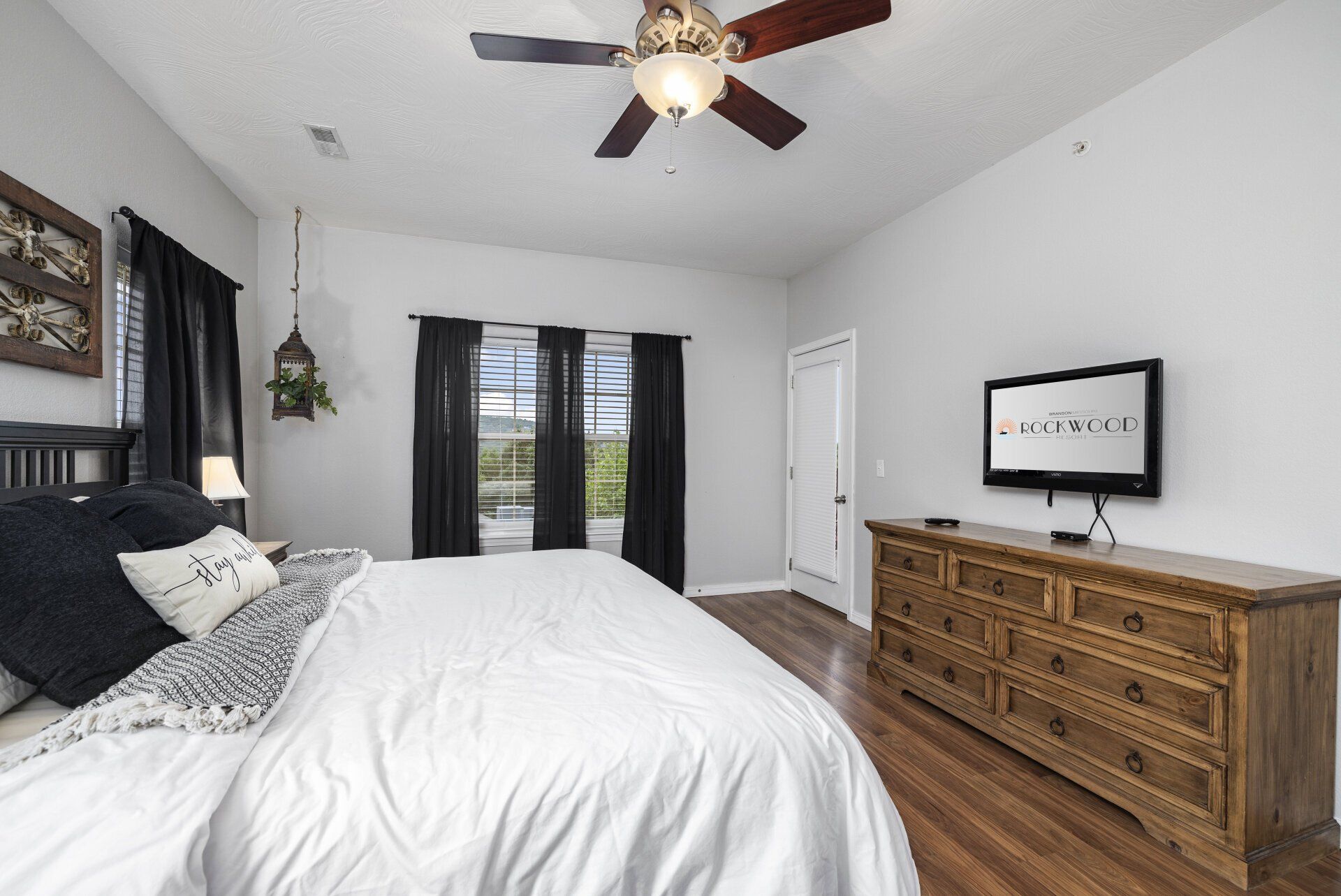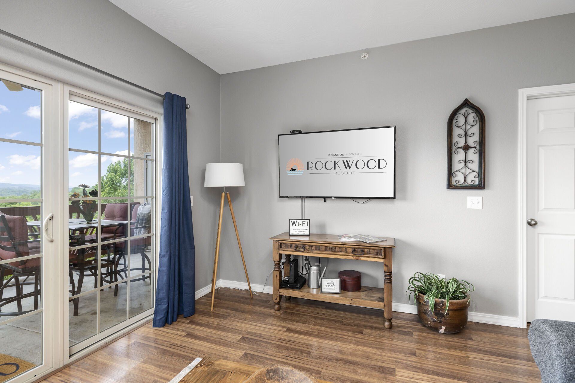 This 2 bedroom condo is now one of the premier condos at Rockwood Resort on Indian Point! Stunningly decorated and fully stocked with superior sheets, towels, kitchenware, etc, this space is intended to feel just like home. You'll have immediate access to the lake just down the drive from your door and the huge pool just a few steps away! The master bedroom features a wildly comfortable king bed and a flat-screen TV. The patio has direct access from the master bedroom. The master bathroom is in the master bedroom, and it features a large corner jacuzzi tub as well as a walk-in shower. The second bedroom features a full over full-size bunk bed with a full-size trundle which means that room can sleep up to 6 people comfortably! It also features a flat-screen TV! The second bathroom features a full-size shower/tub combo. The kitchen is fully stocked with enough plate and glassware to serve 10 people, plenty of pots and pans, all of the necessary cooking utensils, a coffee maker with coffee, cream and sugar, and a toaster! The living room has a huge flat-screen TV with a Roku Stick connected for Netflix, Hulu, etc., and a queen-size pull-out couch. The dining room seats 6 comfortably at the dining table and 4 comfortably at the bar top. The patio is spacious and will comfortably seat 4 for dining! Guests will have access to the pool, the lake and everything in the condo including all toiletries, paper towels and so much more!